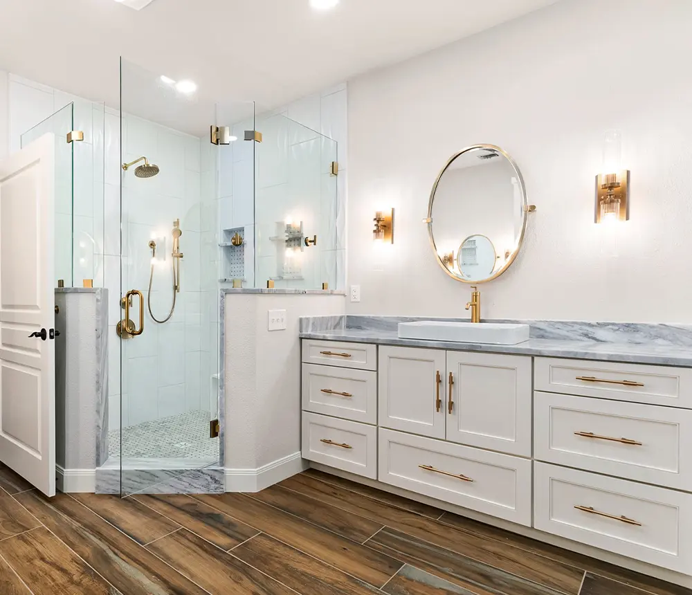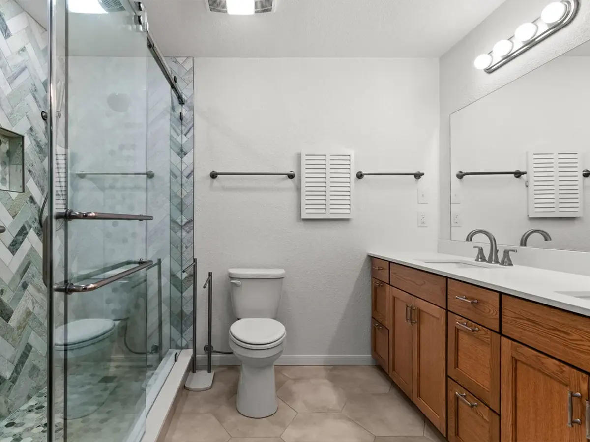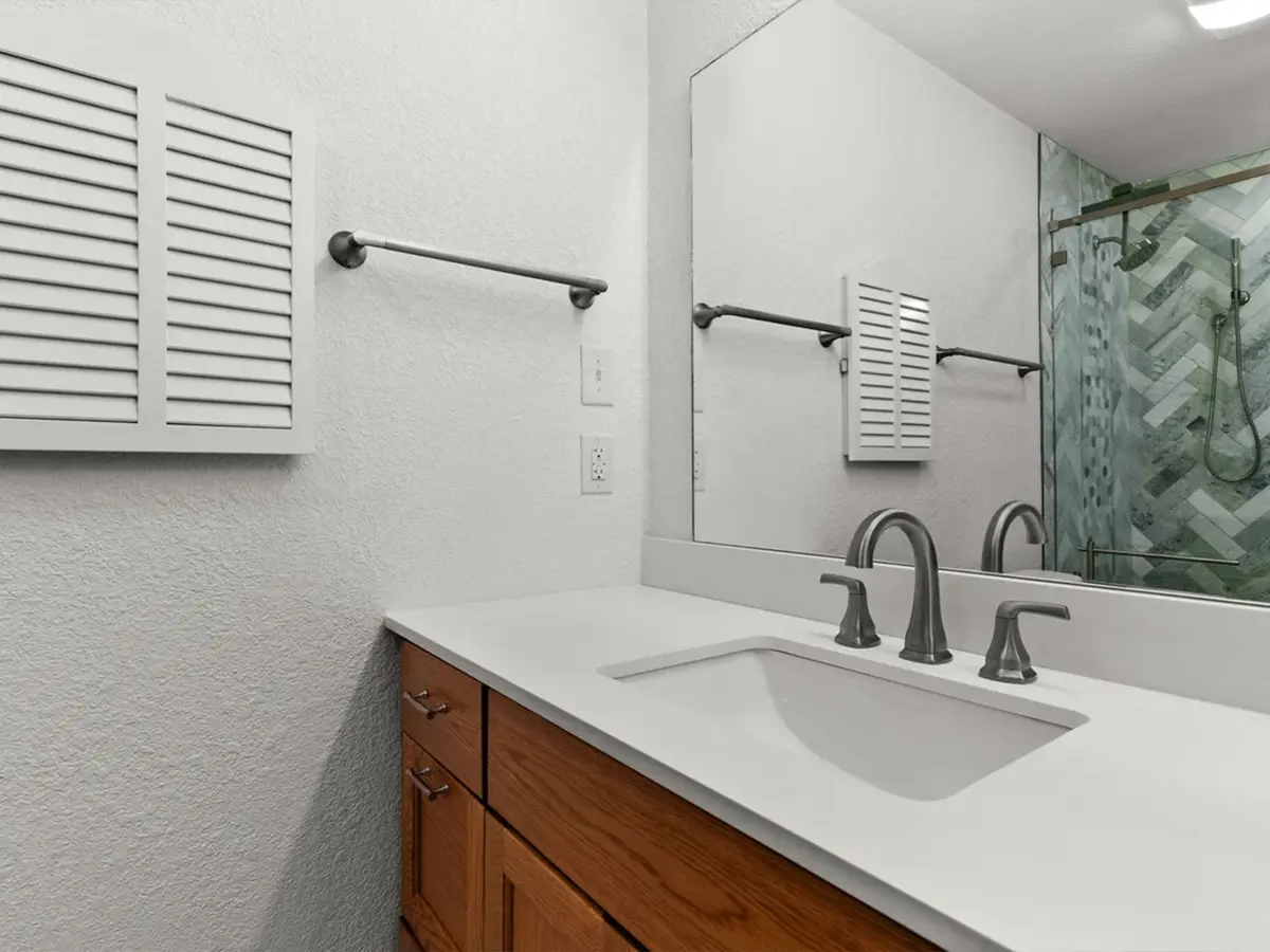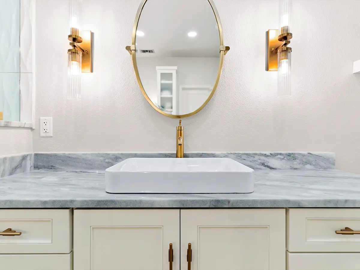 Carefully selected lighting and faucet fixtures completed the transformation, creating a space that’s as practical as it is beautiful.